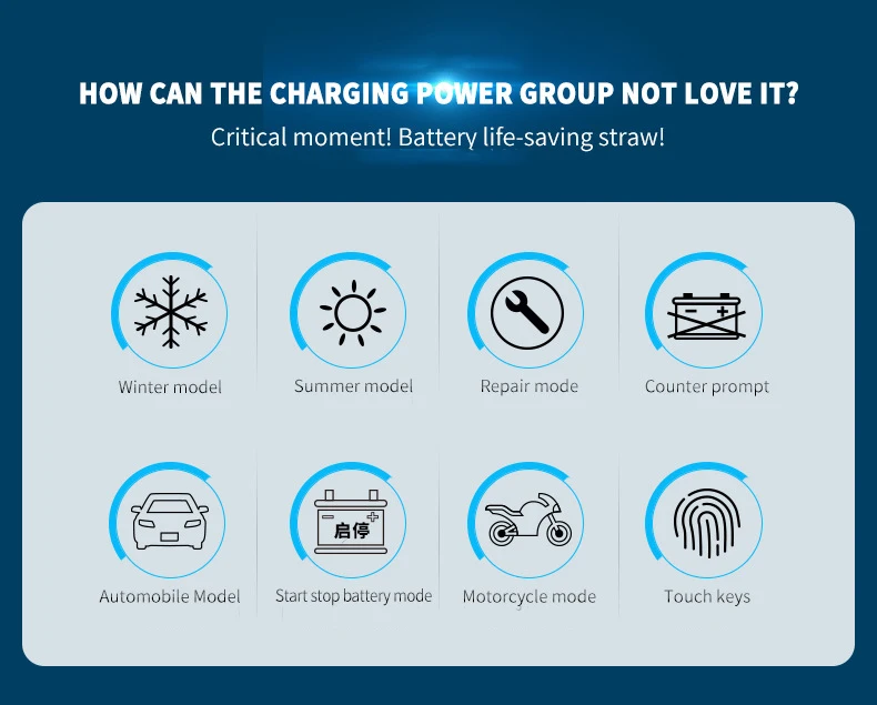 Multiple modes: Car / motorcycle / AGM / GEL / lead acid